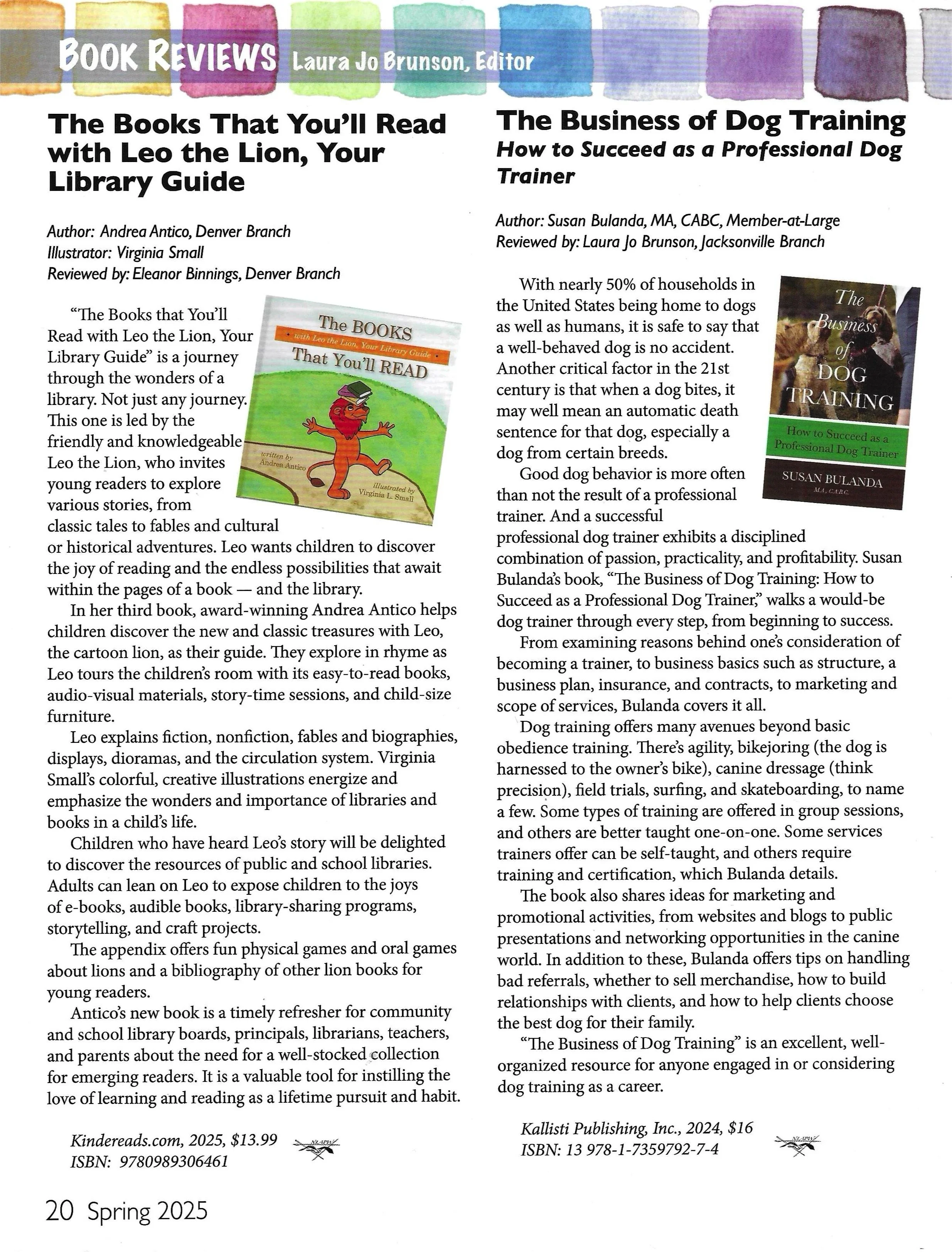A member of the National League of American Pen Women, I am the Book Reviews Editor for its magazine, The Pen Woman (and I write book reviews as well).